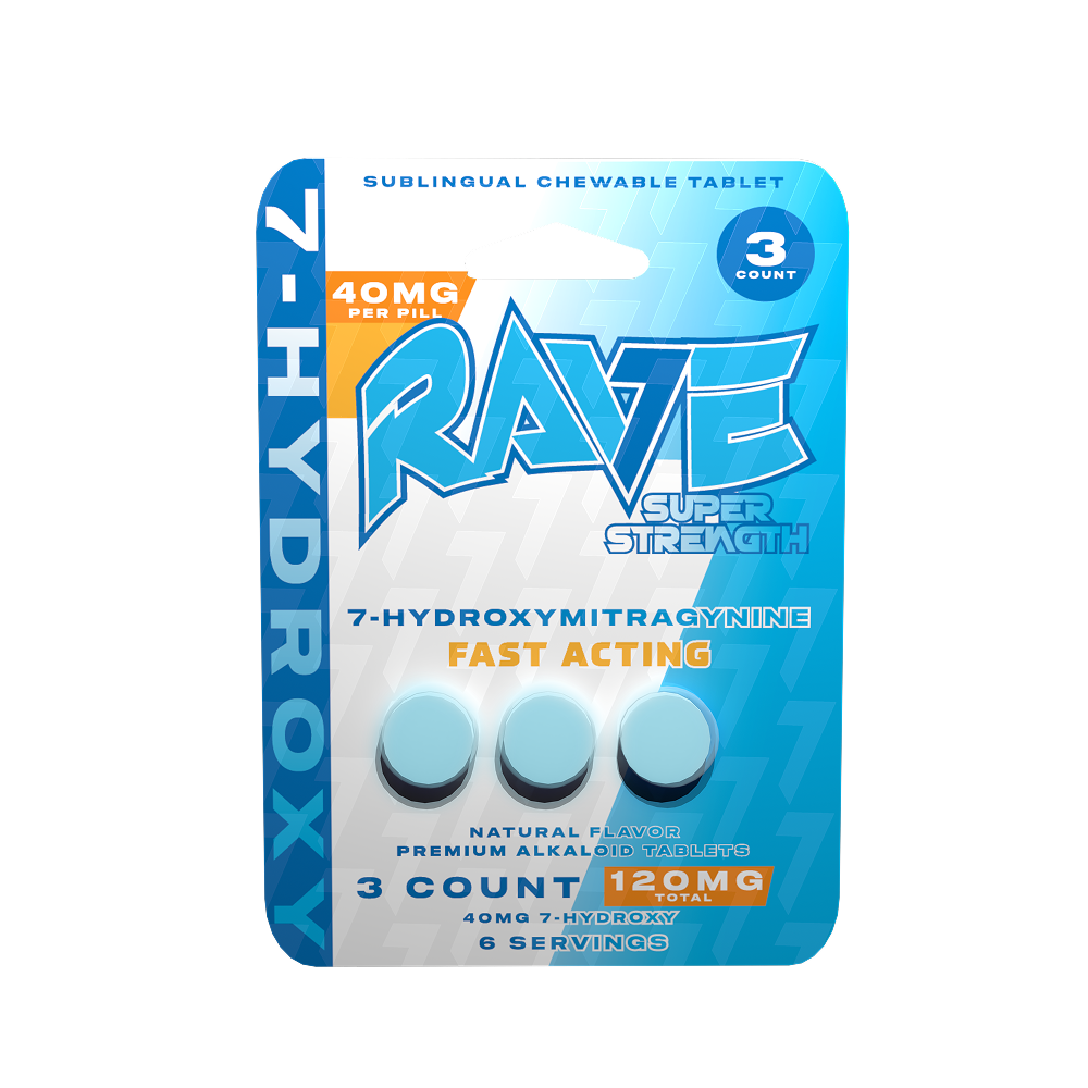 Rave Kratom 7-Hydroxy Super Strength Tablets – 120mg (3ct)