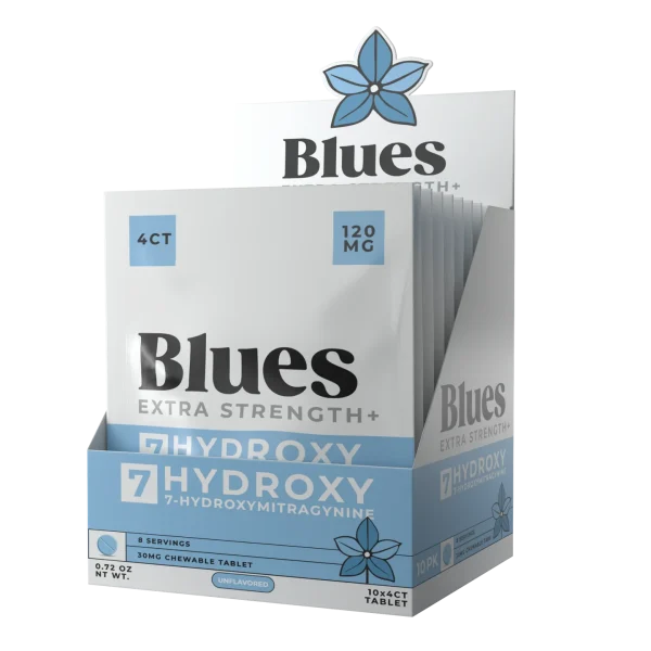Blues Hydroxy 30mg Tablets offer a no-compromise kratom extract experience. With 30mg of 7-Hydroxy Mitragynine per tablet, this product is formulated for experienced kratom users seeking strength and speed in their routine.