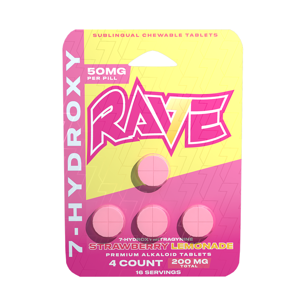 Rave Kratom 7-Hydroxy Extract Tablets – Strawberry Lemonade (4ct)