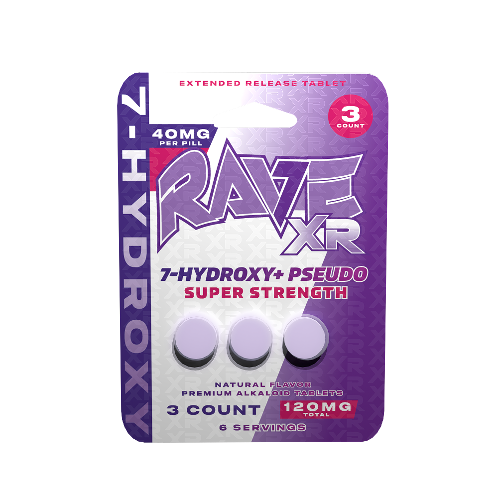 Rave Kratom 7-Hydroxy Extended Release XR Tablets – 120mg (3ct)