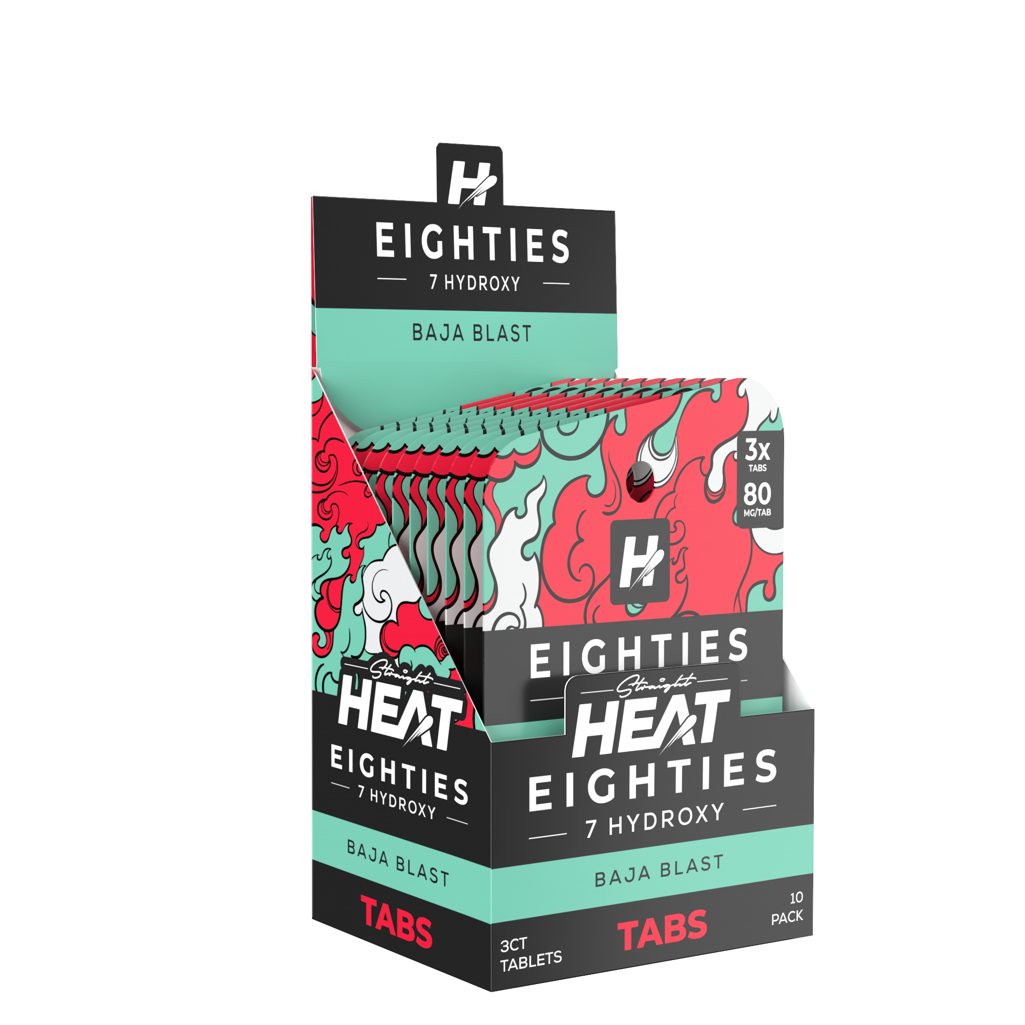 Designed for serious Kratom users, Straight Heat’s **Baja Blast-flavored 7-Hydroxy tablets** pack a powerful **80mg per tablet** dose.